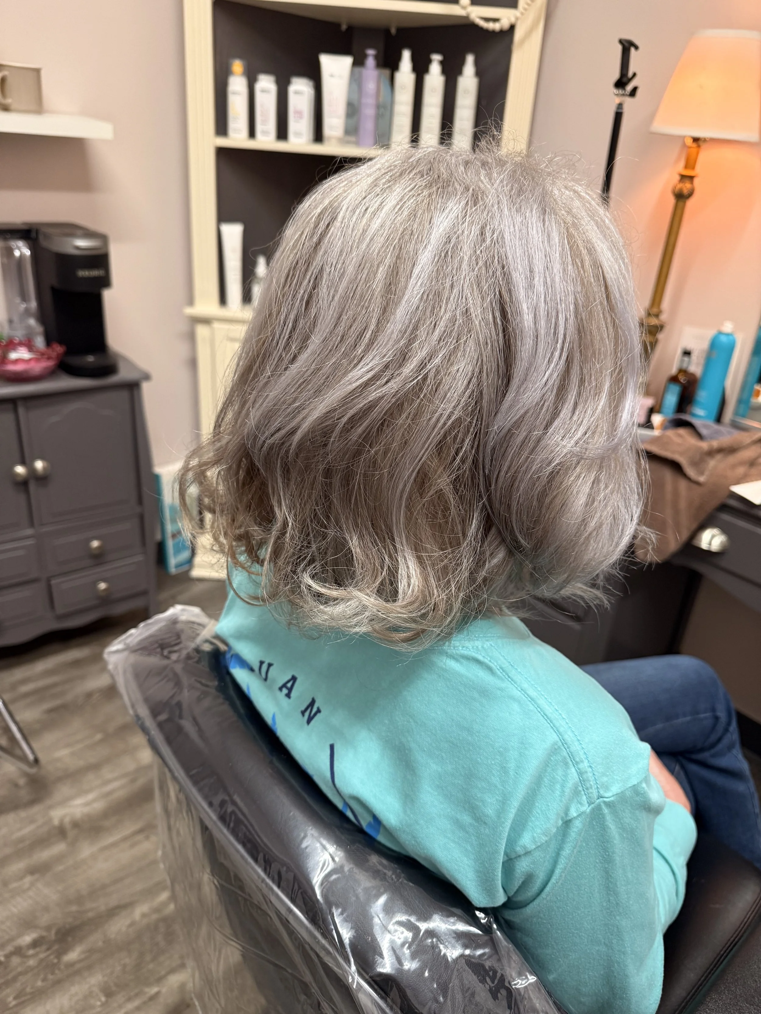 One of my clients—we’ll call her Lisa—came in recently for a beautiful dimensional grey blending service. We softened her growout with a custom toner that blended her natural silver into the rest of her color. It looked amazing—soft, radiant, and effortless.